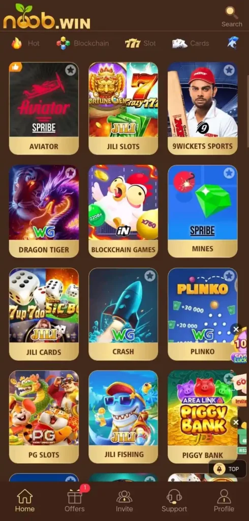 Noob Win Game is an online real-money gaming platform that allows users to play different casino-style and skill-based games through a mobile application or website. The platform provides multiple game categories where players can place small bets and win real cash rewards.